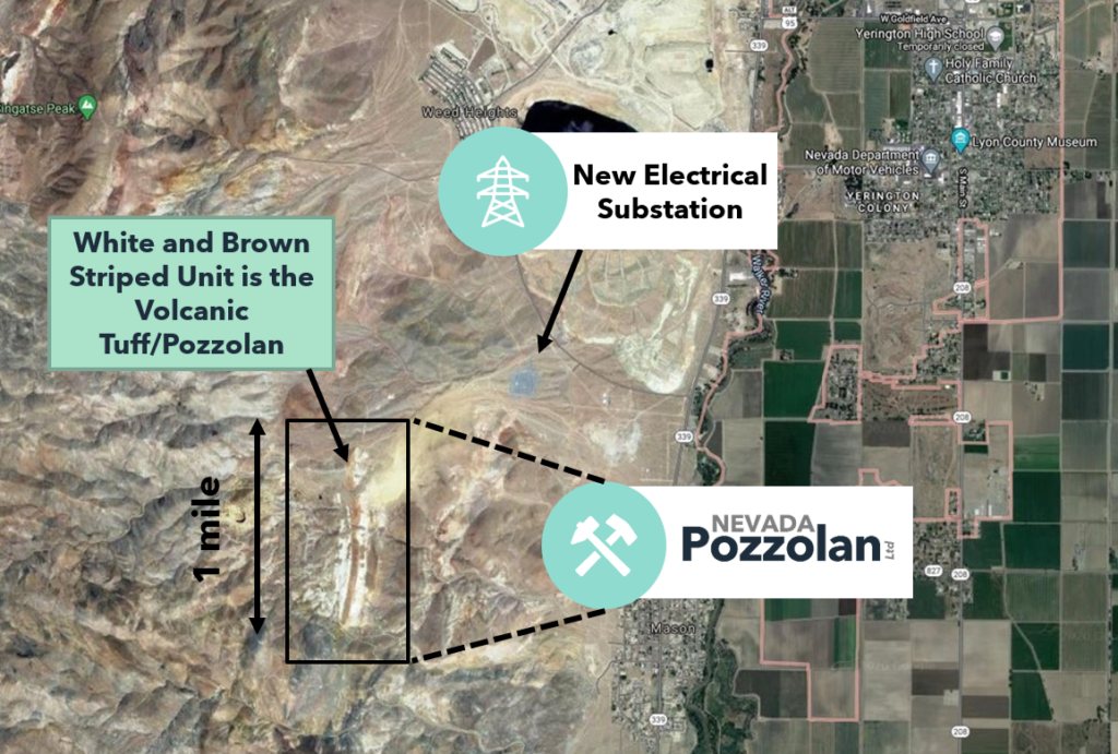 - Power, water and infrastructure are within one mile of the natural pozzolan deposit