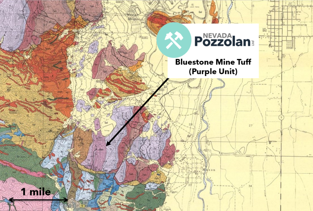 Nevada Pozzolan Ltd owns an exclusive license agreement to a natural pozzolan deposit of approximately 220 acres located on private property within the Yerington Mining District of Lyon County.